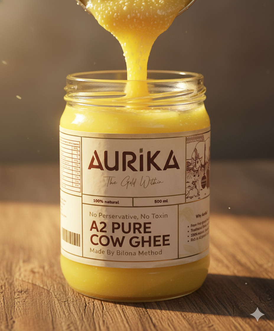 Each batch is lovingly churned from A2 cow milk, preserving the essence of ancient methods. Taste the difference in every rich, golden drop.